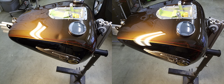 Here is a gallery of before and after images of our dent and crease repair on motorcycles.